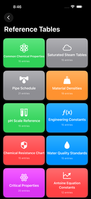 Access essential chemical engineering data right from your phone. No more searching through textbooks or carrying heavy references to the plant or lab.