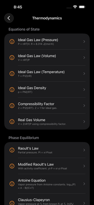 Built for chemical engineers, process engineers, and engineering students, Chemical Engineering Formulator delivers over 1,500 professional calculations, 14 reference tables, and comprehensive unit conversions in one powerful app. From heat transfer and fluid mechanics to reaction kinetics and distillation, this app covers every major area of chemical engineering.